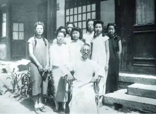 1943年,叶嘉莹(右二)与顾随先生及同班同学合影