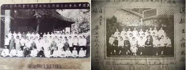 左上:1930年英华女校高三年级毕业班合影 右:1937年培德高级小学毕业班合影