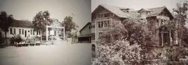 左:民国初期的四川自贡华英女校本部,右:上世纪60年代培德中学(原华英女校)一角。