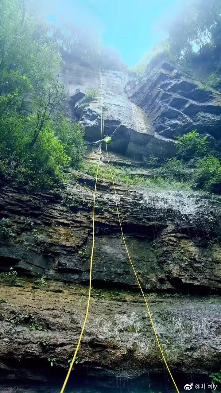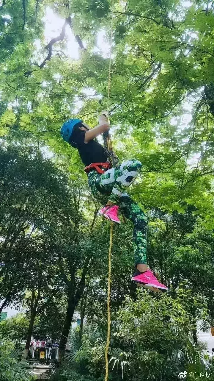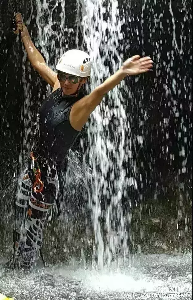 室内攀岩不过瘾,她跟着探险队攀岩,玩溪降,和瀑布的水一起落下来。