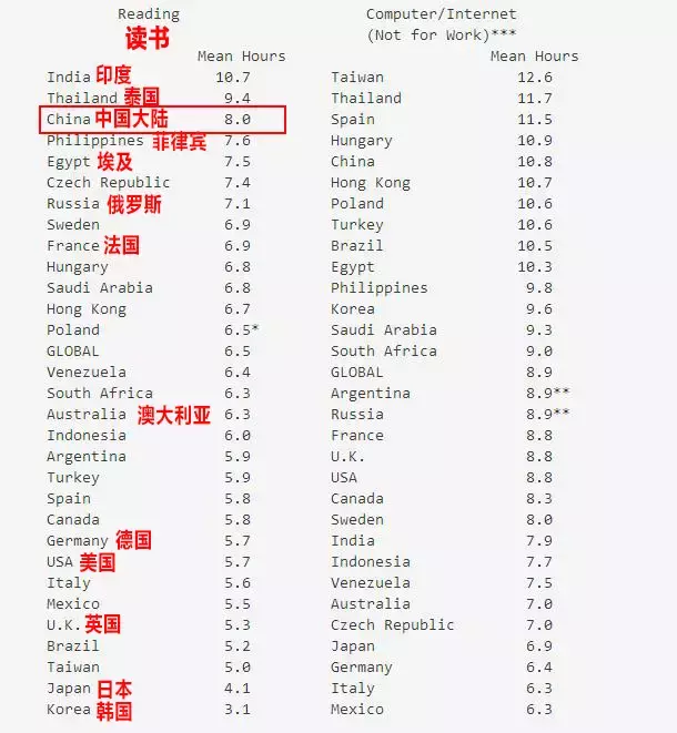 中国人的读书时间,并不像中国某些媒体宣扬的那样,比其他国家少很多。