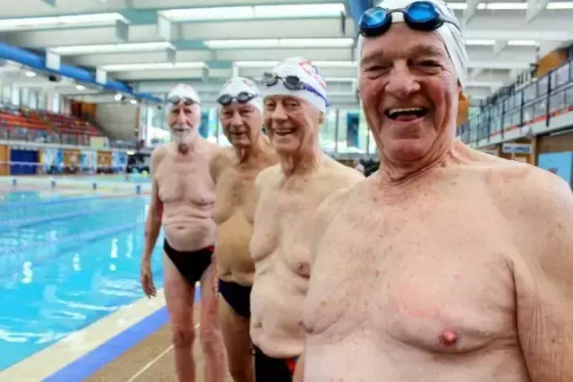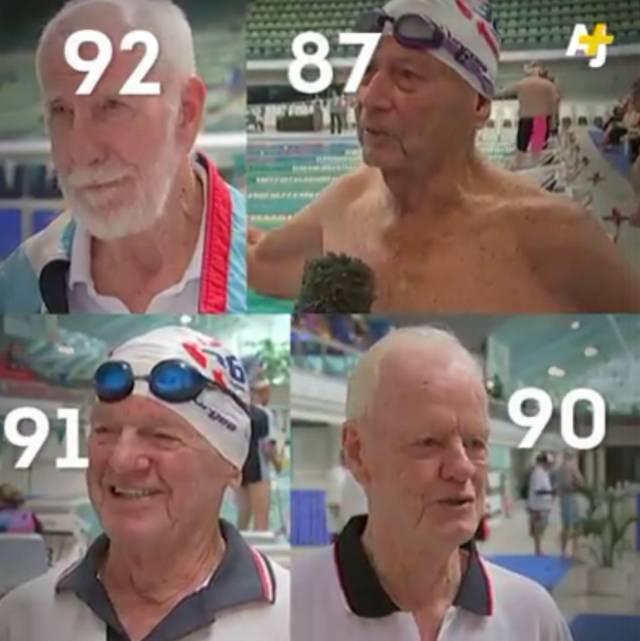 四位老英雄组队报名参加本州游泳锦标赛的接力赛,还按照四人年龄总和给队伍命名为Team 360。