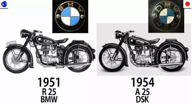 技不如人,厚着脸皮模仿也就算了。在摩托领域,日本拥有雄厚的实力。即便这样,日本居然还山寨德国宝马的摩托。造型抄袭,连宝马的LOGO也不放过,直接把蓝白色块换了下位置,BMW变成了DMW,简单,粗暴,丧心病狂啊。