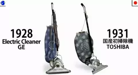 20世纪初,欧美发明了一批先进的家用电器,刚刚起步的东芝远赴美国考察,然后毫不客气地就抄回了国。东芝生产的日本第一款吸尘器和冰箱,都是完全照抄美国通用电器的产品,甚至连外观都一丝不苟地模仿。