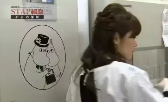 小保方晴子特立独行。别人进实验室穿白大褂,她却穿奶奶留下的料理服,实验室墙壁也被刷成可爱的粉色和黄色,还到处是呆萌的姆明卡通贴画。
