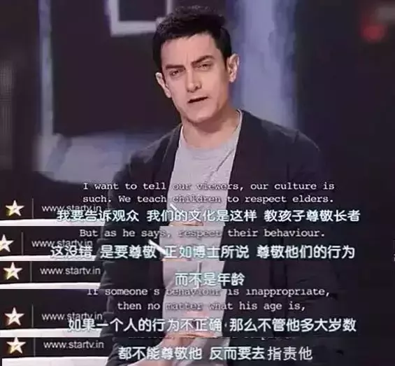 阿米尔•汗在他主持的《真相访谈》节目中曾跟一位博士讨论过尊重老人的话题: