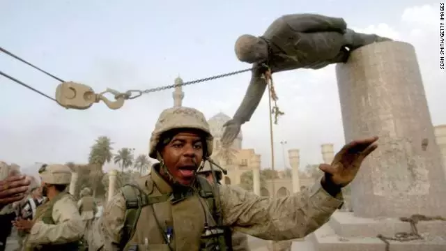 美国陆战队推到萨达姆塑像(来源:jznews.com.cn)