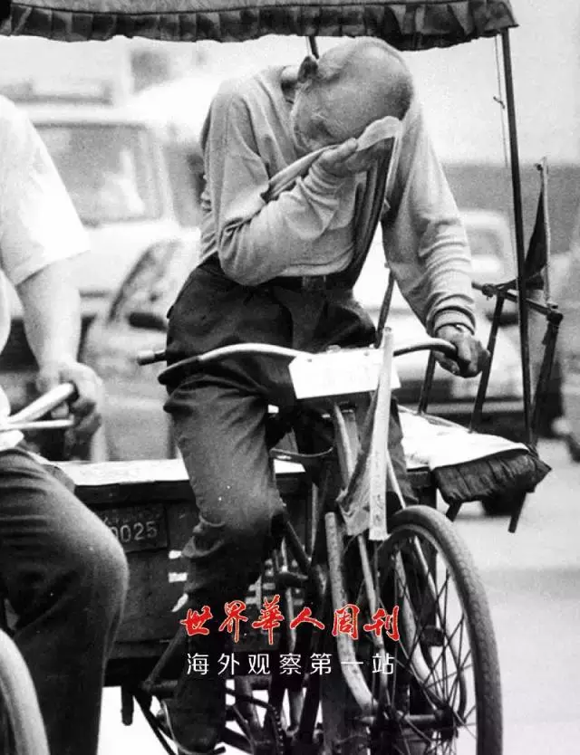 无论寒冬酷暑,白方礼都早出晚归。天津的夏天有时候气温高达近40度,快被烤化了的马路上空无一人,却还是有一位耄耋老者在蹬着三轮艰难前行,寻找着可能的客源。