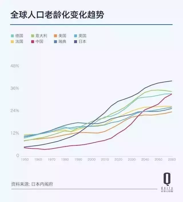 日本内阁府发布的《老龄社会白皮书》预测,2050 年日本人口将不满 1 亿,65 岁以上老年人将占总人口的 38.8%,远远高于发达国家 26.5% 的比例。