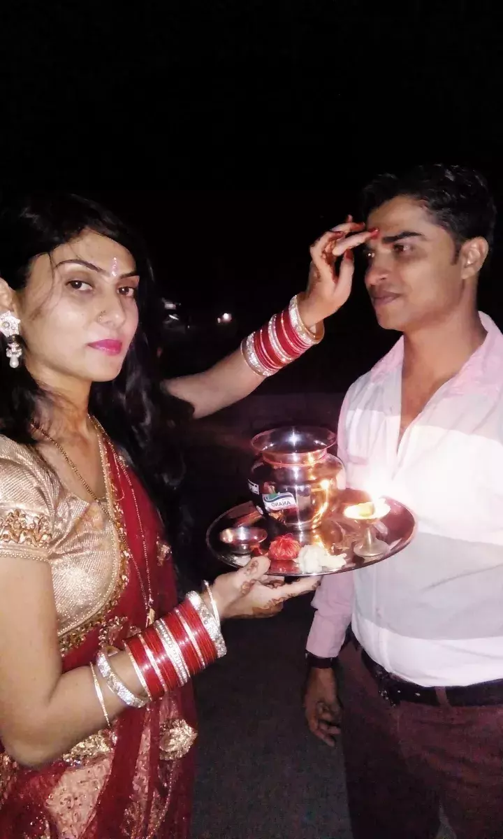 库玛尔妻子为丈夫进行点灯仪式