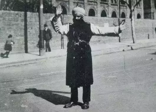 上海公共租界印度巡捕在指挥交通