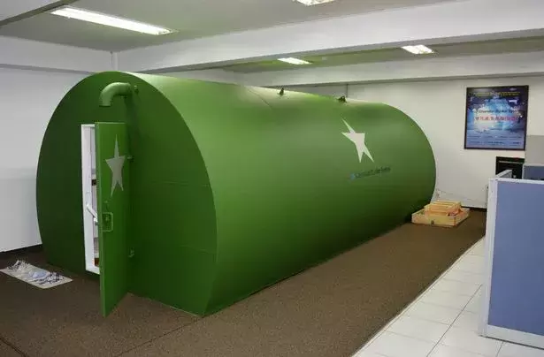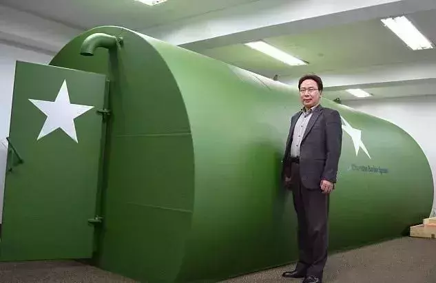 所以,很多人家都像Kim的父母一样,早早买好了防核面具、防核服、逃生包,以防万一。不过,在韩国,防核面具和防核服倒是没有卖脱销,反而是一个看上去平淡无奇的铁罐子卖疯了,而且这个罐子要价不菲——18万元。这个罐子就是韩国首款民用核掩体。