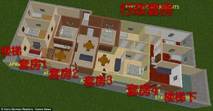 这座地堡地上面积约13万平方米,地下有两层,第一层是公共区域,设计比照5星级酒店以及单间工作人员宿舍。第二层设有四栋豪华公寓,每间公寓均设有简单厨房、用餐区、两间卧室、客厅和浴室。
