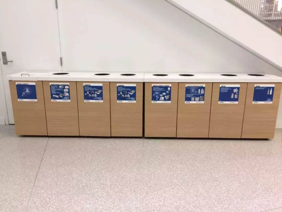 记得我第一次去学校餐厅吃饭,用餐结束后要自己清理垃圾,面对一排垃圾桶(见下图)我直接懵圈了,这是第一次,我因为扔垃圾而深深怀疑自己的智商。