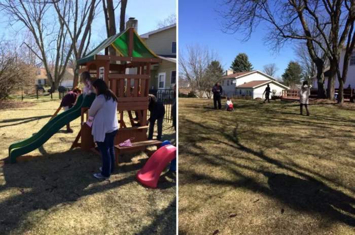最贴心的是,Celia家的院子比较大,父母很细心安排了很多户外活动:在自家院子里挖彩蛋(因为巧遇复活节),搭建了秋千、滑梯、平衡车。这些游戏项目让到场的十来个孩子简直玩疯了,他们不仅收获了快乐,还在游玩的过程中学会了排队、守秩序和等待。