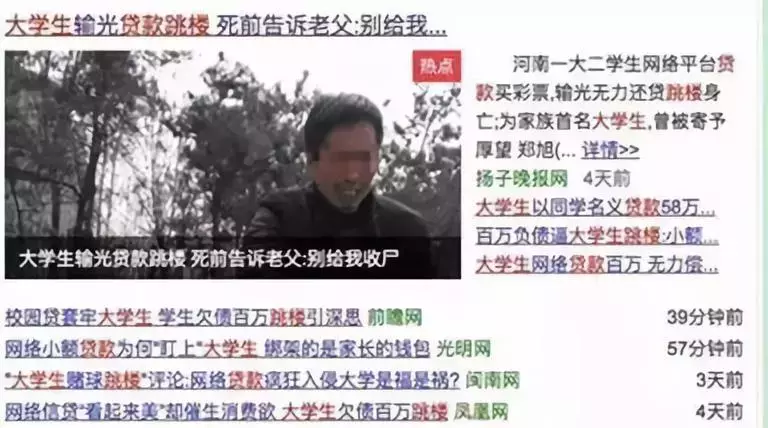 去年,因为大学生还不上款而自杀的新闻,就多达数十起,早在前几年,媒体还曝光震惊全国的“裸贷名单”,数百名女大学生的身份信息、裸照、不雅视频在全网传播!