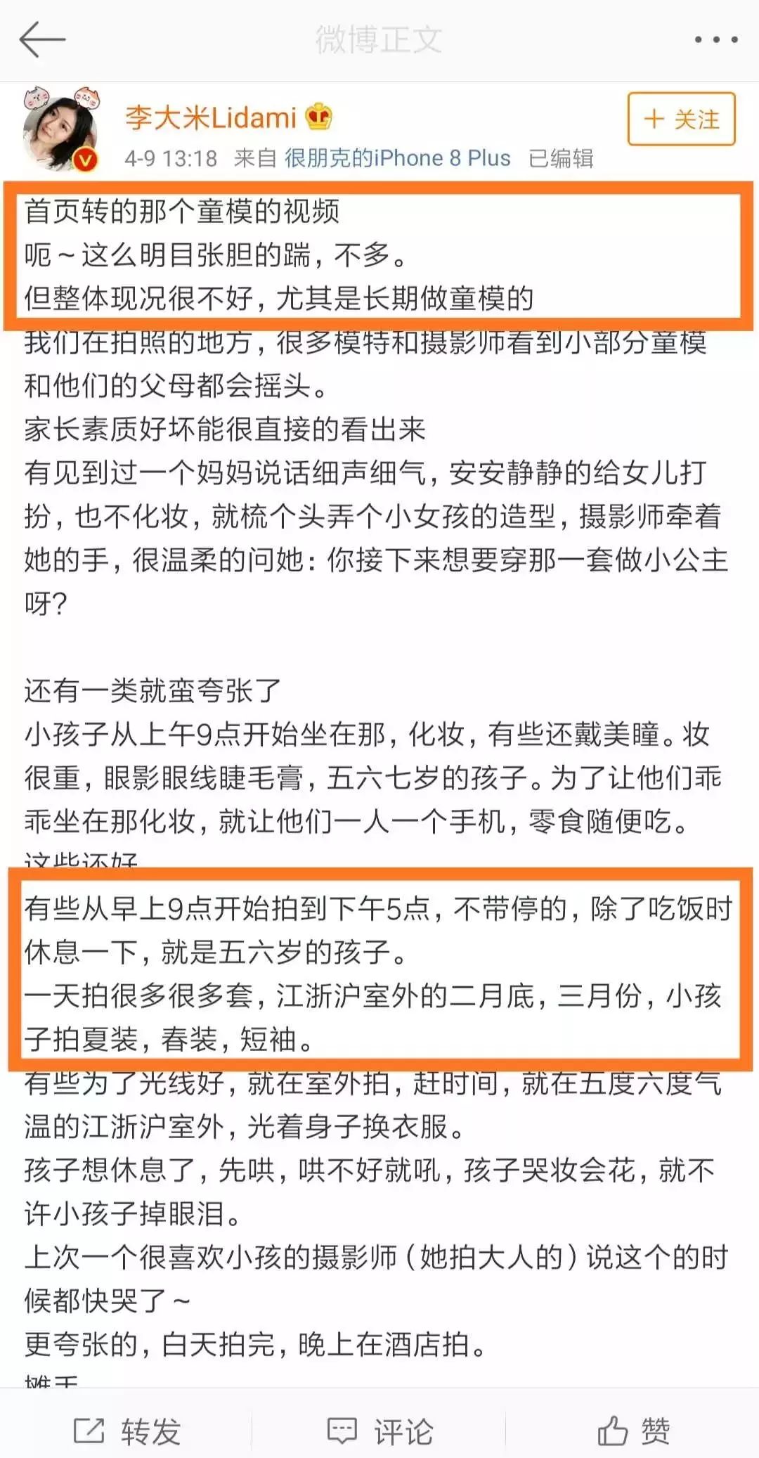 不知道这些童模们的父母是出于怎样的考量,让年幼的子女在本该接受教育、欢脱撒娇的年纪拼命挤入成人世界,走一条“不寻常” 的成长路。