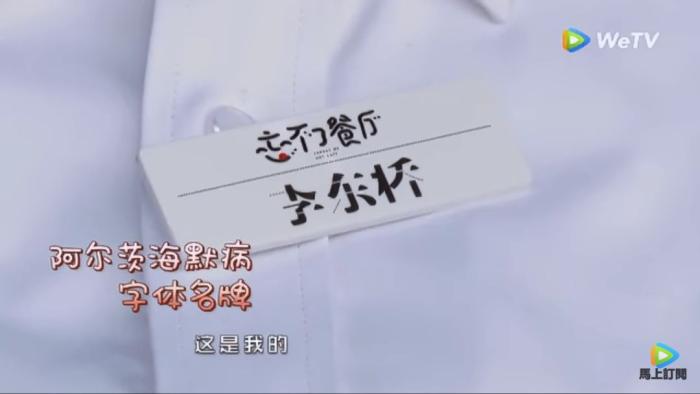 ▲员工名牌,节目组选用“阿尔茨海默病字体”,代表老人们缺失不全的记忆