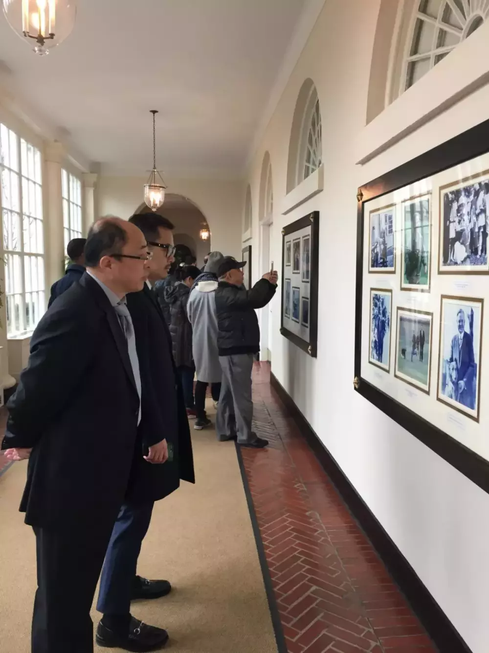 作者(左一)在参观白宫走廊上的照片