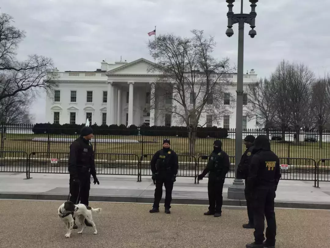 白宫门外警察在轻松聊天