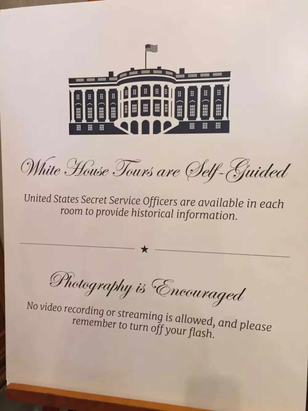 白宫入门处张贴的“鼓励拍照”的告示