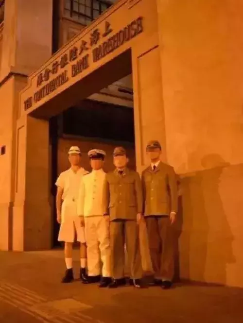 2017年8月7日下午,四名“精日”男子身穿二战日军制服,乘夜在著名抗日遗址、爱国教育基地四行仓库拍照留念。