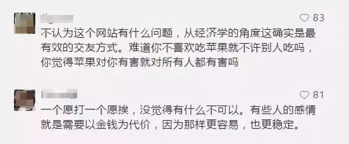 “不认为这个网站有什么问题,从经济学角度这就是最有效的方式,难道你不喜欢吃苹果就不许别人吃吗?你觉得苹果对你有害就对所有人都有害吗?”