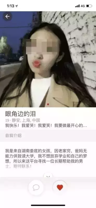 “我是来自XX的女孩,因为穷无法完成学业/因为想获得更好的资源和成长,来这个平台寻找长期帮助我的男士。”▼