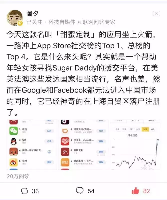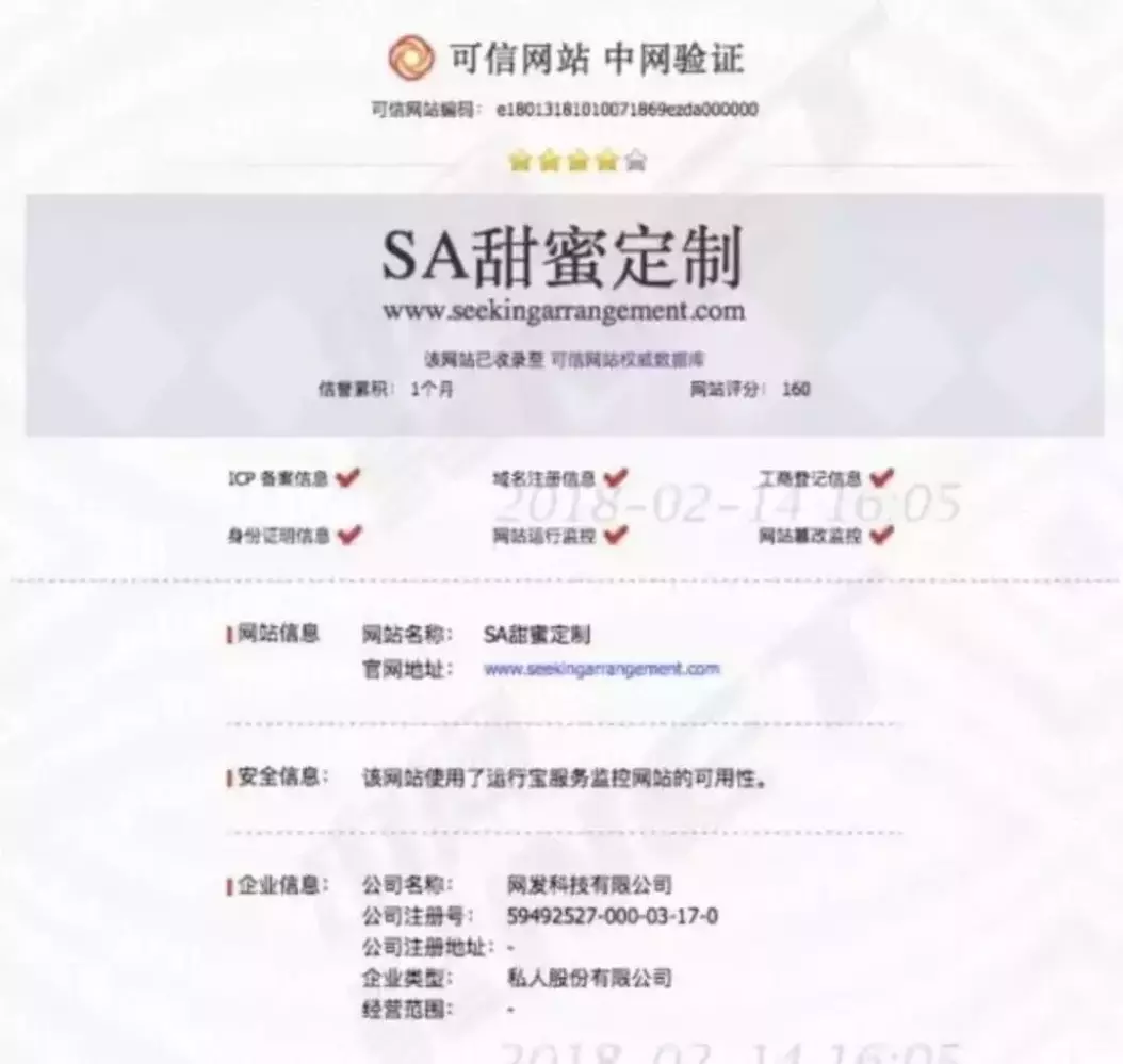 据悉,在Instagram和Facebook都无法在中国上线的情况下,这款名叫“甜心有约”(Seeking Arrangement)的下流网站,已经成功落地上海自贸区,并在国内上线多个APP,甚至开放微信公众号,还获得了工商部门的登记。