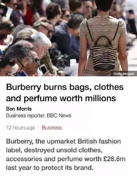 Burberry这次大量烧毁产品求保值的行为不仅激怒了消费者,还遭到了环保人士的抗议。