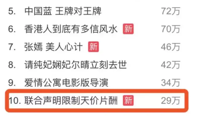 为整治这一乱相,前不久,国家曾出台这么一项政策:“限制天价片酬”,还上了微博热搜。