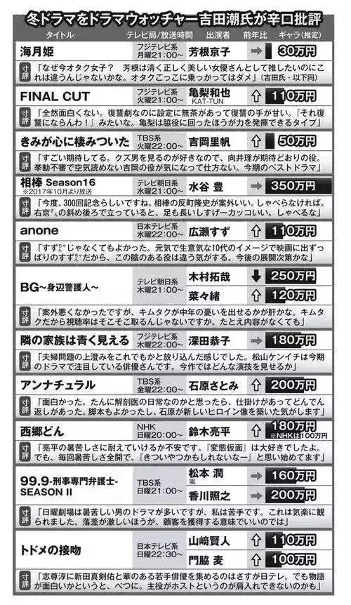 而其中最高的水谷丰,在拍摄《相棒 Season16》时,片酬也只有区区350万日元(折合人民币约21万元)。