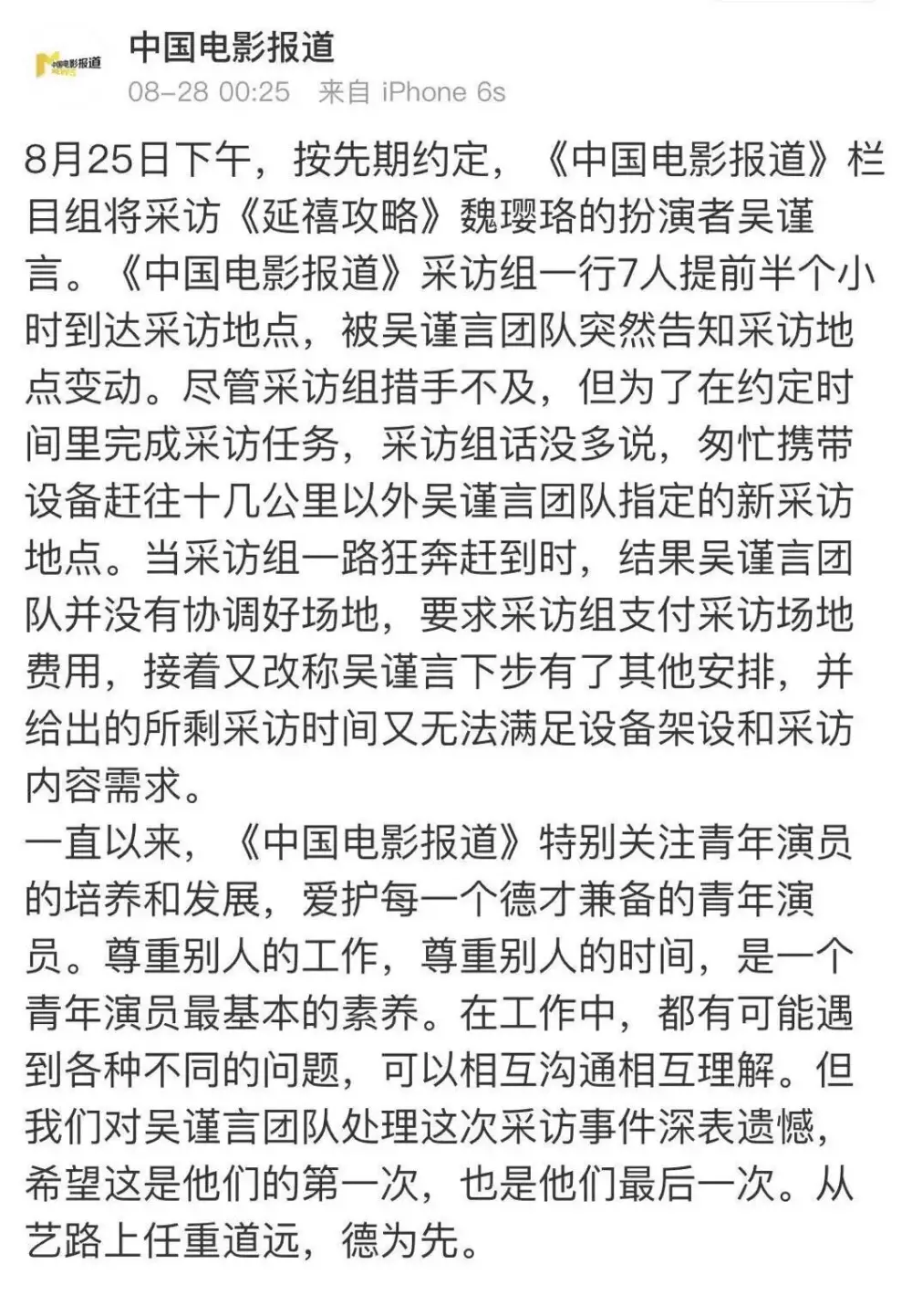 这还没几天呢,咋就犯了错道歉了,这不,还被中国电影报道给点名批评了。