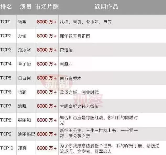 这不,前阵子有媒体报道了中国电视剧女演员片酬榜,这光是片酬达8000万的,一只手都数不过来。