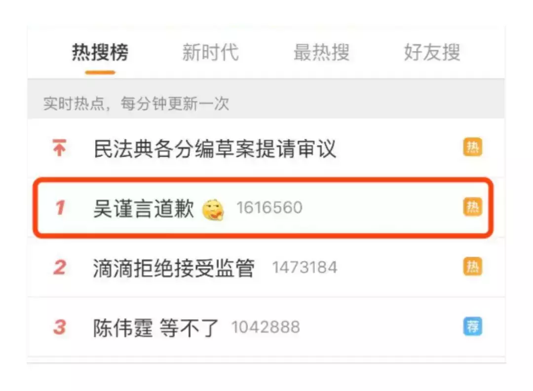 今天,微博热搜榜第一出现在大家面前:吴谨言道歉。