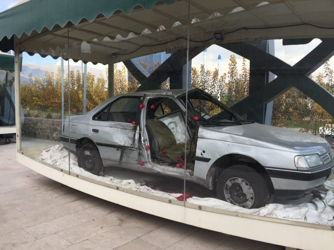 在德黑兰一家烈士博物馆里,存放着一辆辆残破的小汽车:有的车门被挤压变形,有的没有了挡风玻璃,还有的甚至脱落了车皮……