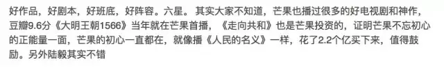 连一向被认为是“娱乐至死”和喜欢播各种穿越耽美剧的芒果台,也因为热播《人民的名义》再次被观众“表白”,有4000多人点了“有用”:▼