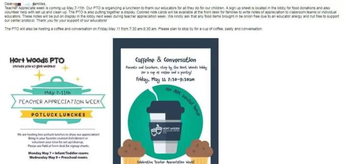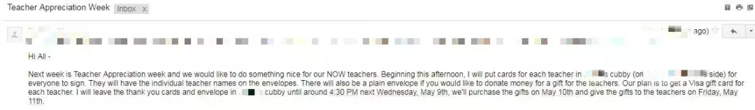 谢师周的前一周朋友收到Pre-school负责人发来的邮件: