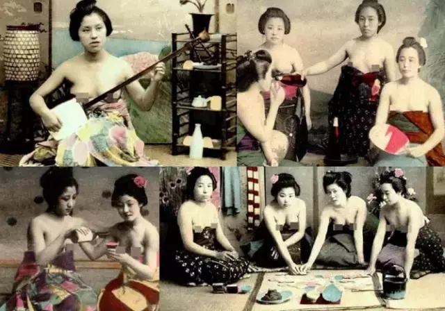 从西方记者的照片中,我们可以看到艺妓服务时上身两乳是尽露的。