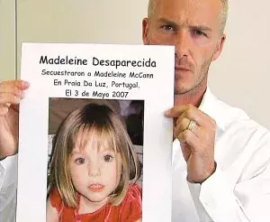 英国球星贝克汉姆举着寻找马德琳的海报呼吁