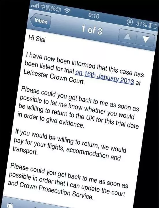 此前中国网友晒出的英国警方“跨国作证”的电邮内容