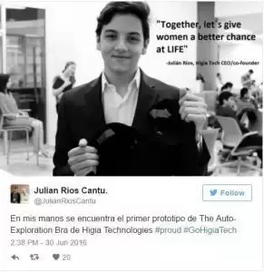 这个预测乳腺癌的智能胸罩不仅让万千女性看到了保护乳房的希望,也让Julián受到了多方关注,连墨西哥的总统都为他点赞~