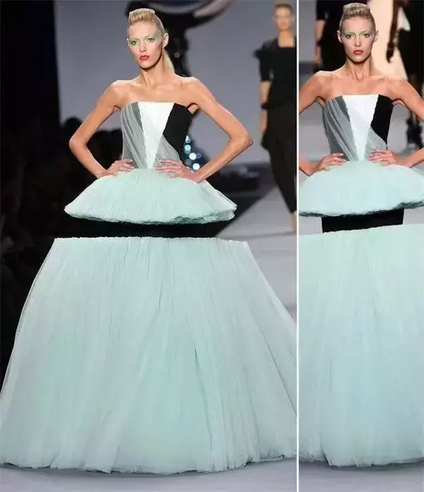 中间用黑布连接的裙子,形成了奇怪的视觉效果