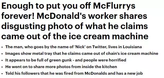 目前,这事已经惊动了美国食品安全局(FDA),他们随之介入调查。如果调查情况属实,麦当劳将面临巨额罚单,全部麦当劳员工将重新接受食品安全培训。
