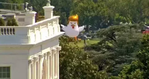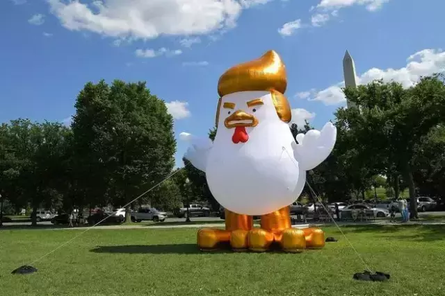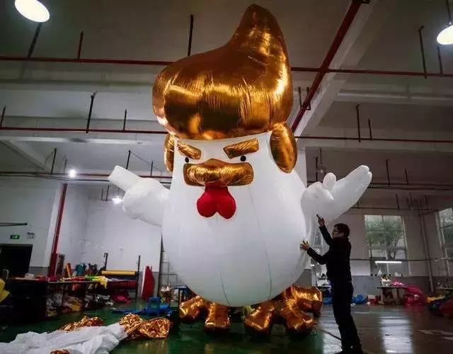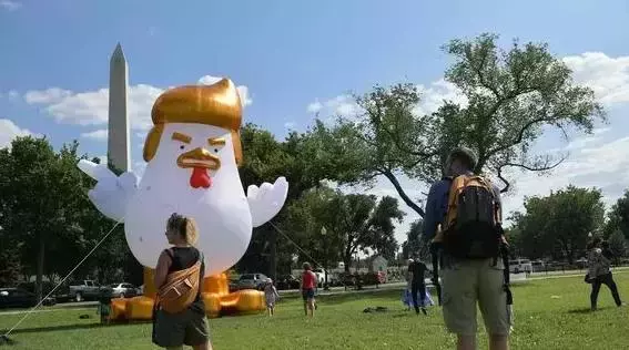 还有热心网友@了特朗普本尊,“白宫后面有一只充气鸡,是你吗?”