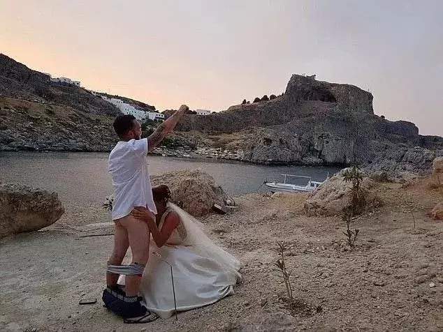 更惨的是,因为这对夫妇的奇葩婚纱照,引起了希腊人民的强烈反感,于是修道院公开声明:从此以后,不再同意外国人在修道院举办婚礼。。