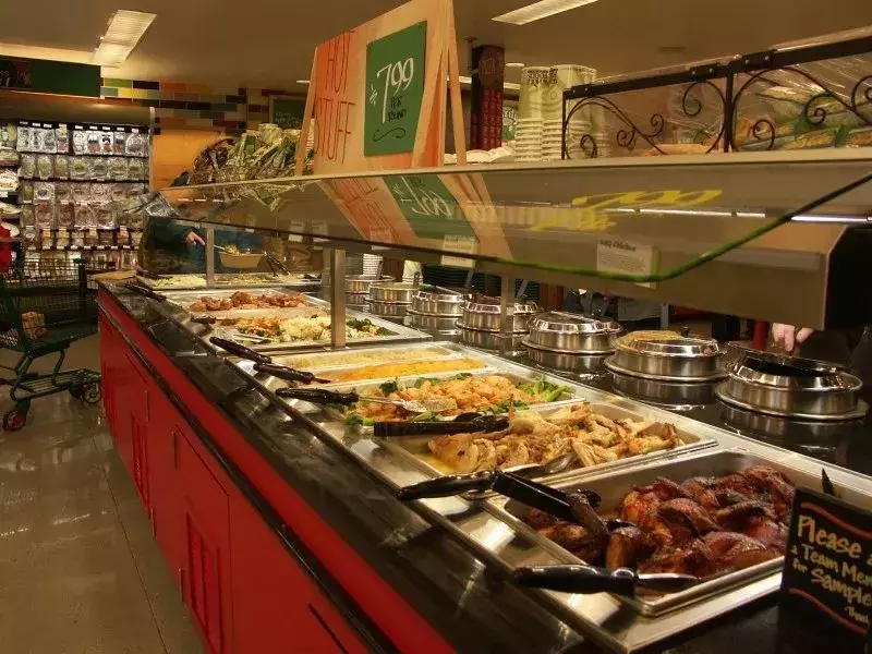 美国的商人们也乐意配合这种现状。走进任何一家美国超市、便利店,如果不算排队结帐时间,两分钟就能买到质量不错的工作午餐:已经配好的蔬果沙拉、切成小块装盒的水果、烤好的披萨、包装好的三明治……随拿、随买、随吃。