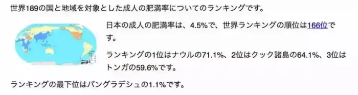 要知道,日本的肥胖率只有4.5%,在全世界都是倒数。
