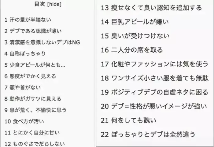 不过,这也不算耸人听闻。在日本,胖子真的是很不受待见,都说坏人有七宗罪,日本网友直接给胖子定了“二十二宗罪”!