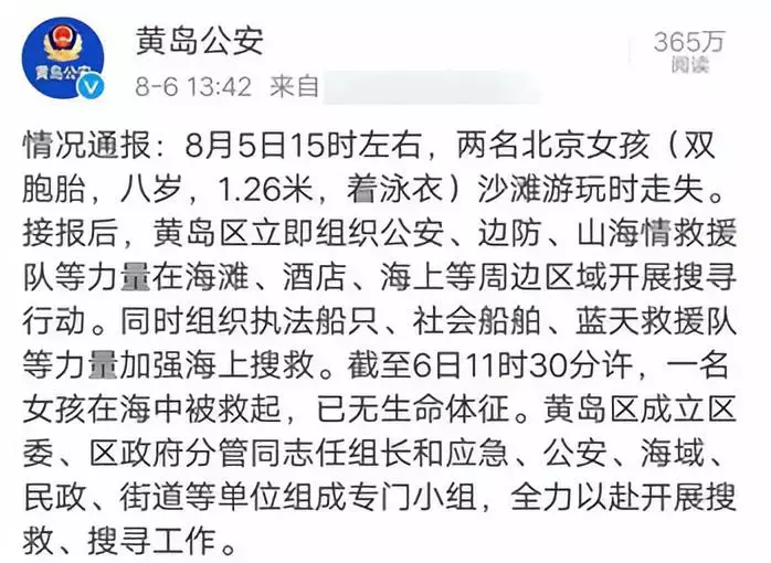 突如其来的噩耗将这位妈妈彻底击垮,她说道:“她们就是在沙滩上玩,我坐在离她们几米远的地方看手机。就是看一会手机,看一眼孩子,之前还看见她们一起挖沙子,所以有点松懈,发完朋友圈后发现孩子不见了”。